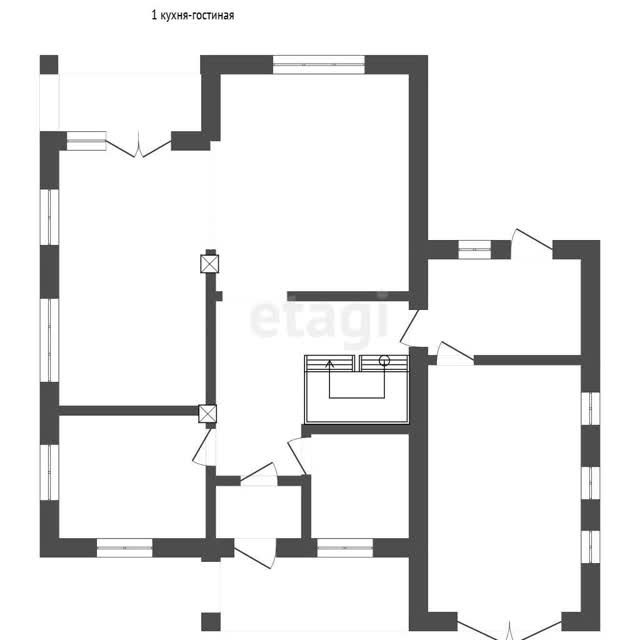 1 этаж: просторная кухня, зал (гостиная), гостевая комната, гардероб, санузел.